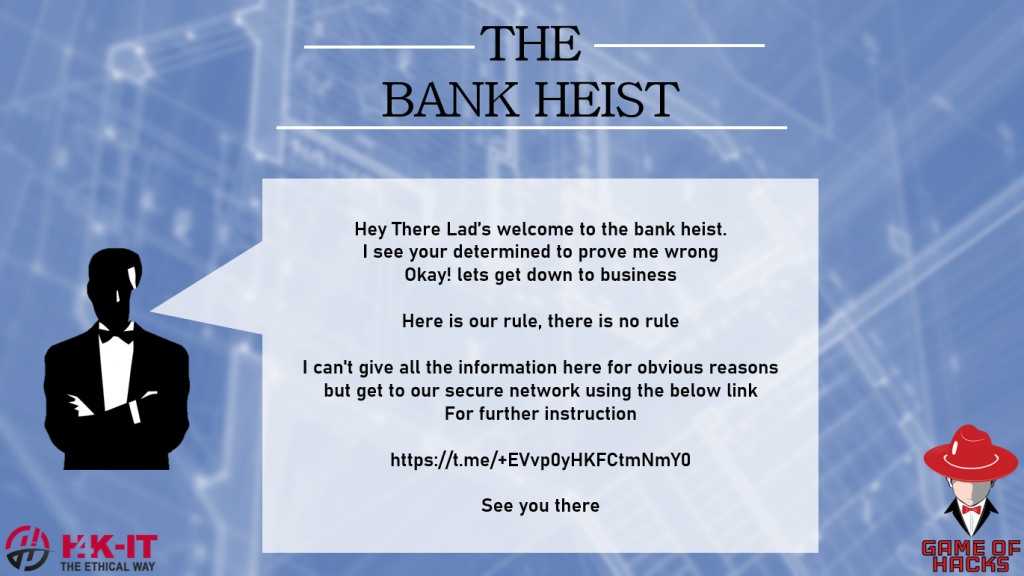 H4K-IT Hosted another CTF Competition which is a build-up to the main event. This year CTF is one of a kind which simulated real-world penetration testing. There were put into several categories which include OSINT, Web, Initial foothold, Mail-root, Network owner and privilege escalation. The Theme of this year was to hack a bank.