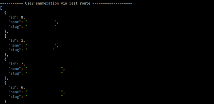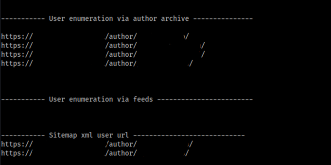 The user will be prompted for the URL of the target web application, the URL is the passed to the different end points of the rest API to enumerate for users, then the tool tries to enumerate for users through the author archive, then it goes and check if there are any feeds available on the sites which it then looks for users on the feeds file and finally the tool tries to access the sitemap XML and see if it is accessible If it is then it will go to the path of authors and then collects the usernames from them.
